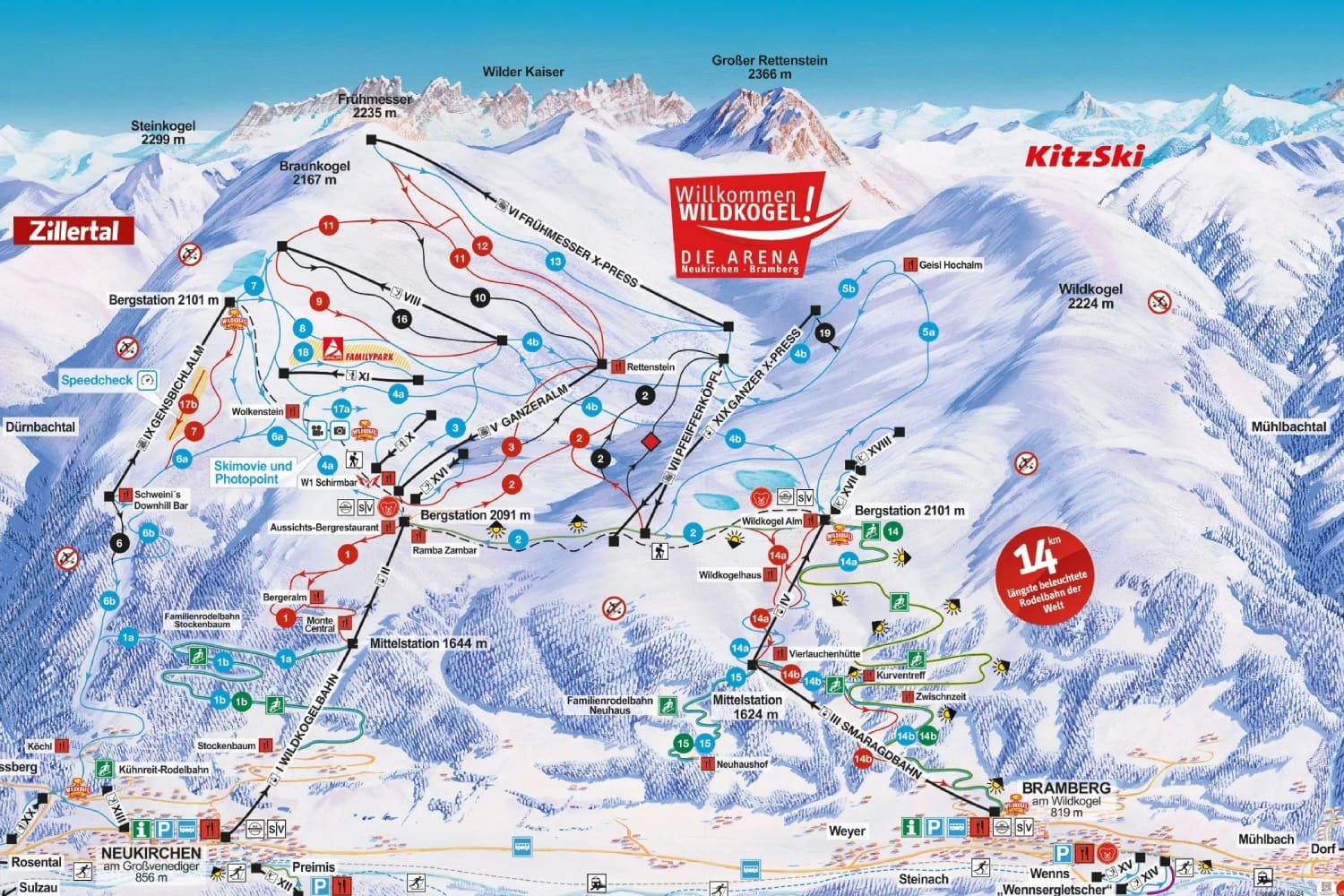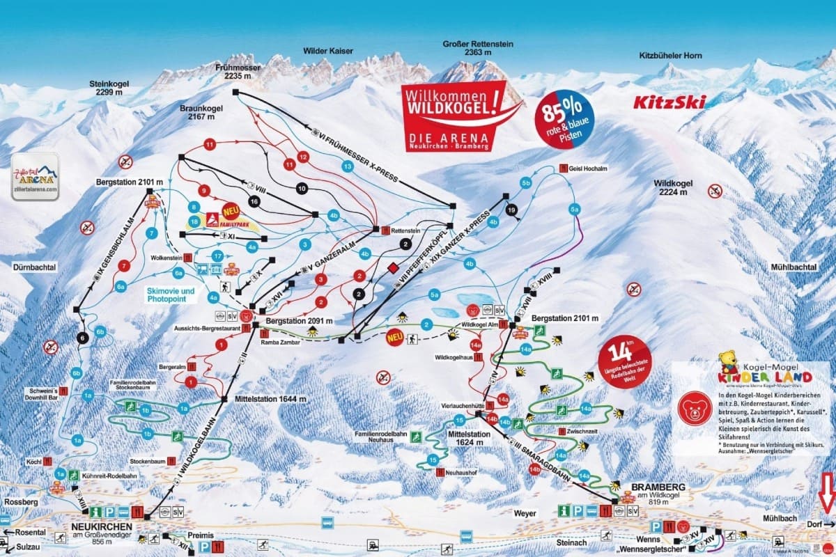 Het Chalet is gelegen in het Salzburgerland op de grens met Tirol in het rustige en pittoreske dorpje Dorf im Pinzgau, gemeente Bramberg am Wildkogel. De Panoramabahn die je het skigebied Kitzbüheler Alpen in brengt, bereik je met de auto of gratis ski bus binnen 2 a 3 minuten. De Smargadbahn die je het fijne familie skigebied de Wildkogel op brengt, bereik je binnen 5 minuten. Op 30 kilometer afstand liggen de skigebieden van het Zillertal en Zell am See/Kaprun.